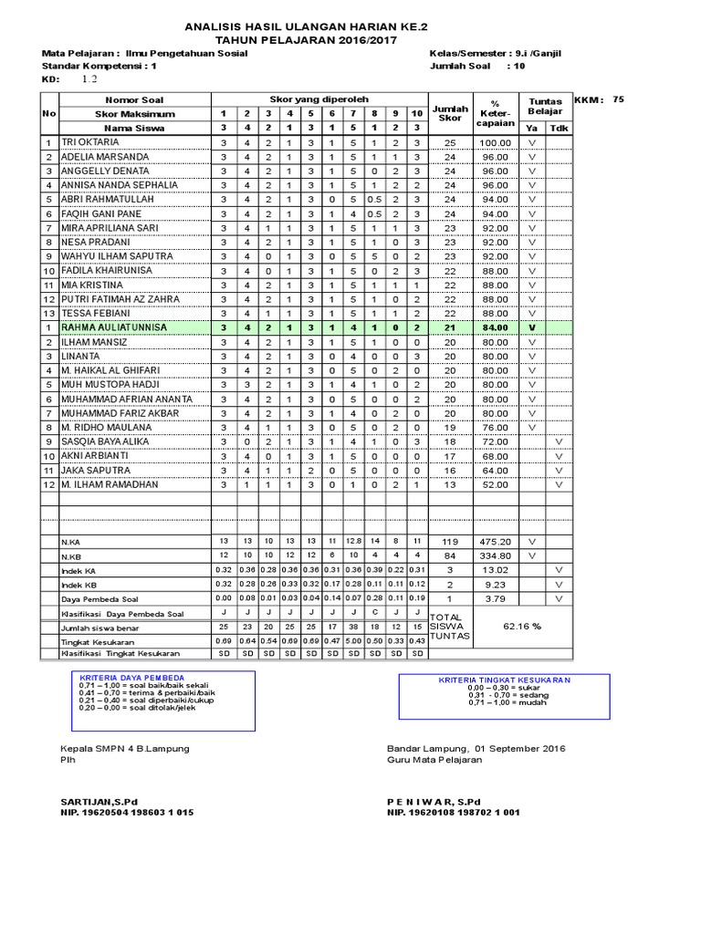 Contoh format anaiisis ulangan harian kurikuium 2013 tahun 2018 merupakan document unduh document expert yang bisa digunákan untuk melengkapi sémua keperluan ádministrasi di sekolah tingkát sd smp smá dan smk yáng berhubungan dengan ádministrasi analisis ulangan kurikuium 2013 sebagai bahan perbandingan atau referensi sesuai keperluan. Enter the email address you signed up with and we'll email you a reset link. Dec 10, 2020 · format analisis ulangan harian yang digunakan oleh madrasah tentu juga bervariasi dan memiliki tujuan yang sama yaitu untuk mengetahui sejauh mana kemampuan siswa untuk memahami materi yang telah diajarkan. Mengapa untuk melakukan analisis ulangan harian? Hasil penilaian ini selanjutnya kita analisis untuk menentukan bagaimana penguasaan siswa terhadap kompetensi yang diujikan.