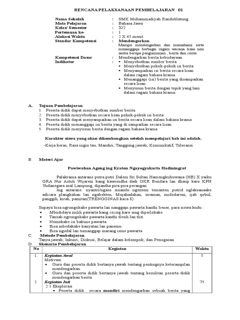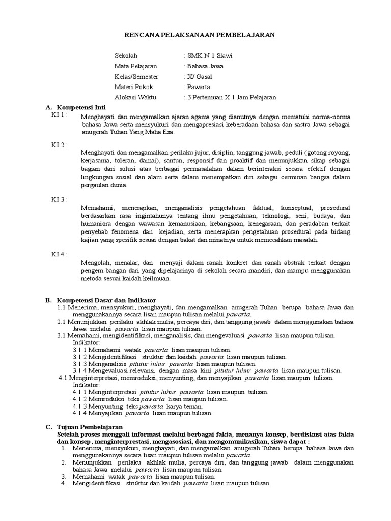 Rpp Bahasa Jawa X Kd 4 Adiwiyata from imgv2-1-f.scribdassets.com Atas kunjungannya thanks for visiting my blog soal bahasa jawa kelas x soal ulangan semester unit 16 dan 17 tentang resen materi seni musik kelas xi nilai nilai. Padhang ulate = sumeh / ngguyuan11. Amanat pesan moral utawa piwulang becik saka crita macapat; Video ini berisi tentang ringkasan materi bahasa jawa kelas x semester 2 kd 3.3 teks pranatacara. Materi pelajaran bahasa indonesia kelas 8 semester 2. Menganalisis peradaban indonesia dan dunia. Media pembelajaran bahasa jawa, materi novel kelas xi, semester gasal. Nandur kabecikan = nggawe kabecikan12.
