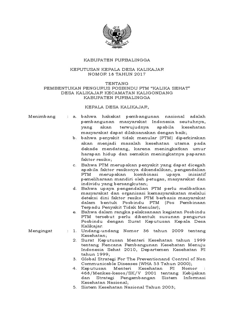 We are a sharing community. Download & view format sk posbindu ptm 2018 as pdf for free. Tujuan sebagai acuan dalam pelaksanaan kegiatan posbindu kebijakan sk puskesmas referensi buku pintar kader. Berikut kami bagikan draft format surat keputusan (sk) kepala desa tentang penunjukan kader pos pembinaan terpadu (posbindu) lansia desa secara gratis dalam web ini. Posbindu, saat ini telah menjadi salah satu strategi penting pemerintah (kemenkes) untuk mengendalikan trend penyakit tidak.