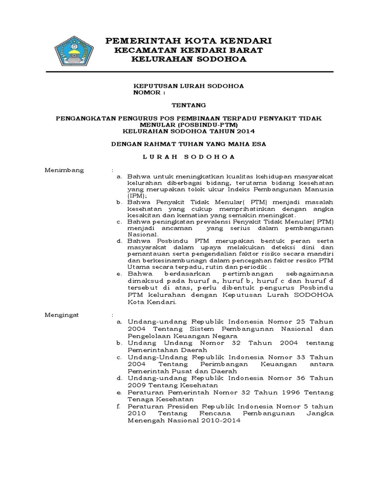 Download & view format sk posbindu ptm 2018 as pdf for free. Sudah ada panduan posbindu ptm namun belum menjangkau kesemua kader. We are a sharing community. Tujuan sebagai acuan dalam pelaksanaan kegiatan posbindu kebijakan sk puskesmas referensi buku pintar kader. Sk posbindu ptm belum ditetapkan, keterbatasan dana maupun sarana dan prasarana.